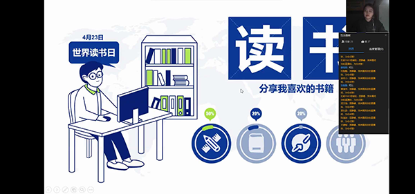 活动采取钉钉线上直播的方式,鼓励学生利用连麦分享自己喜欢的书籍,并畅谈读后感。读书分享涉及到家庭、人生、工作等不同的领域,告诉了我们如何建立良好的人际关系。在听取他人读书的方法与体会后,学生们不仅产生了更多的阅读兴趣,也体会到了读书分享的益处。