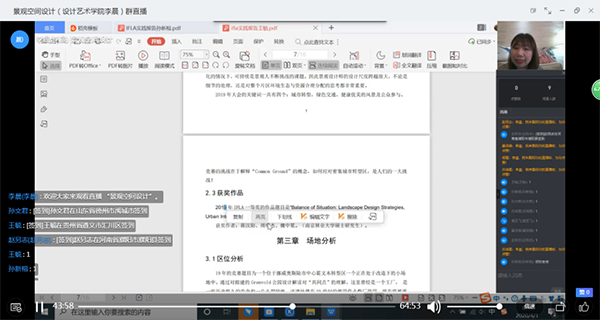 近期,根据研究生授课教学进程,2019级研究生课程已全部结课,设计艺术学院李晨老师针对学生在学习中遇到的困难和疑惑以及课程中的重难点,多次组织研究生线上进行专业学习研讨交流。