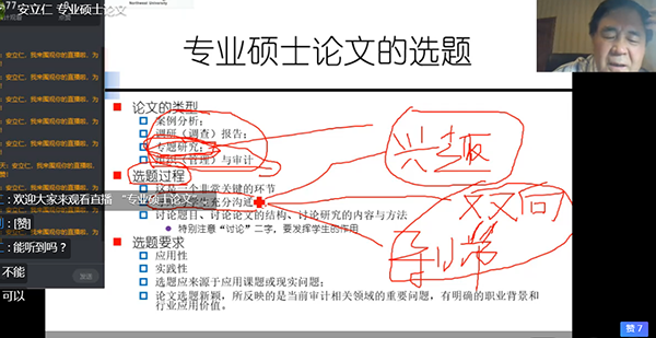 讲座中,主讲人结合本人长期从事研究生指导工作中的经验,围绕专业硕士论文的选题、理论与方法、结构、写作要求等展开论述。他指出,要结合审计专业硕士培养目标确定学位论文的选题,要侧重于应用型研究,从写作类型上分析,建议可以包括案例分析、调研报告、专题研究等类型。他认为选题是一个非常关键的环节,建议研究生们要和各自的导师进行充分讨论和沟通,对文章题目、结构、研究内容与方法等要充分论证,听取多方意见和建议,并强调选题一定要具有应用性、实践性等特征。
