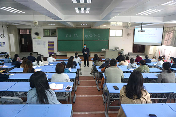 4月26日上午,在2108教室,医学院进行了2019-2020学年第二学期“开学”复课前的线下教学工作会。医学院院长张煜星、副院长刘青、教务科长韩朝及医学院全体教师参加了本次会议,会议由韩朝主持。