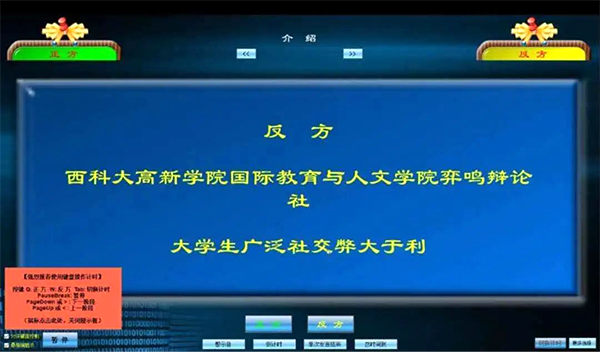 随着正方一辩的立论陈词,辩论开始深入。首先,正方一辩举例萧伯纳,阐述他们所认为的社交并不是盲目的,反而是包罗万象的,并且最后说明了吃亏是福的观点;反方一辩紧随其后,向大家所阐述社交与学习间的关系,并且大量提出大学生自身应提升技能、专注学习,强调其违反了唯物主义辩证法的适度原则。
