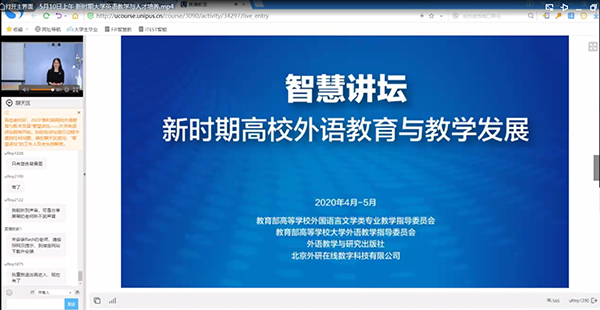 5月10日9:00至16:40,外国语学院利用钉钉平台,组织教师参加了外语教学与研究出版社“2020新时期高校外语教育与教学发展”智慧讲坛——大学英语讲坛。外国语学院英语专业以及大学英语老师参加了此次讲坛,与全国高校外语教育专家学者、教学管理者及骨干教师“慧”聚云端,共商时代命题,共担时代使命。