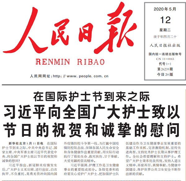 在第109个“5·12”国际护士节来临之际,习近平总书记代表党中央向全国广大护士致以节日的祝贺和诚挚的问候!