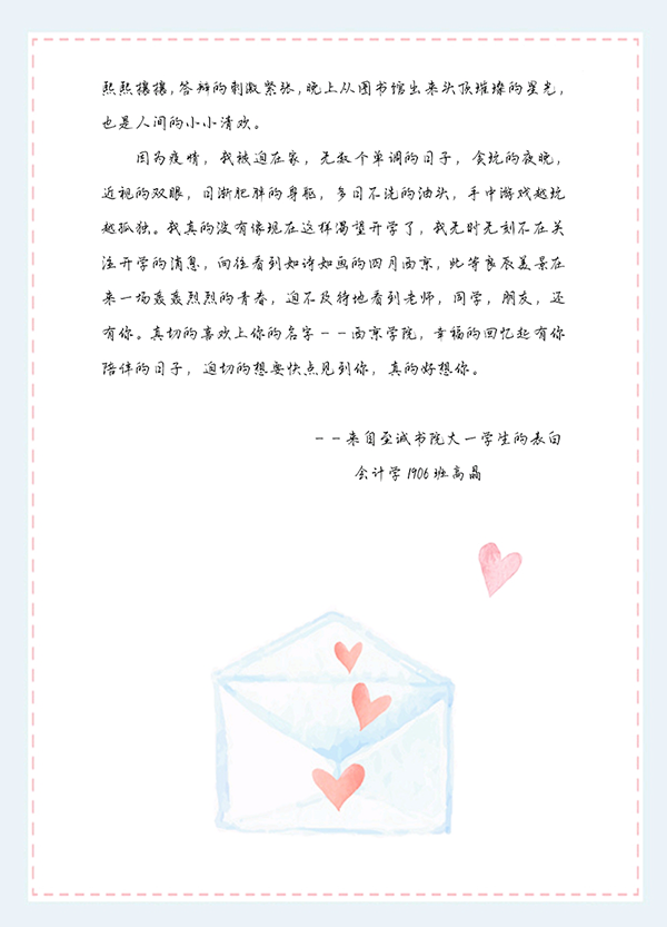 不知不觉中与您已经“分别”四个多月了,今天像往常一样期待着收到您的召唤—开学通知,期盼着快点见到可爱的您,这里有一封写给您的“情书”请查收!