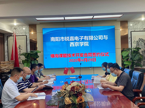 4月29日,理学院郭妮妮老师与南阳市锐嘉电子有限公司会同公司法人张学玲、财务总监张晔等共同举行了横向技术开发合同签约仪式,签署了横向课题《基于面向服务的客户信息系统综合集成技术软件设计与开发》,合同金额49万元。
