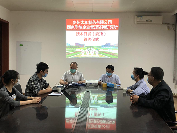 5月27日,西京学院企业管理咨询研究所与贵州太和制药有限公司举行了“贵州太和制药有限公司息烽制药厂药品生产过程物料管理信息系统开发”项目委托开发签约仪式。