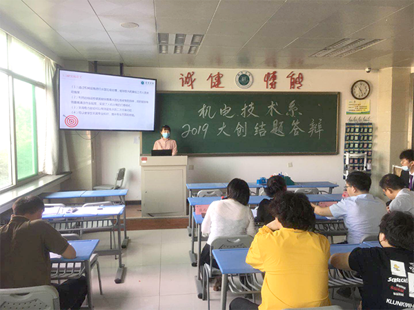 5日25日,机电技术系2019大学生创新创业训练项目结题验收答辩会在1303和1304教室举行,机电技术系共有19项大创项目参加结题验收。此次答辩会邀请教务二处处长边伟、教指委专家王引卫\王登武、教育教学质量监督处刘刚、传媒学院院长张西静、应用会计系主任李杰、管理技术系主任李俊、机电技术系主任巨春飞担任专家评委。