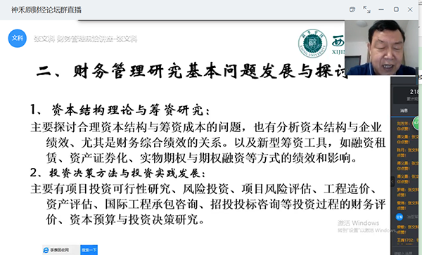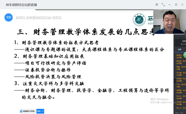 本场讲座中,主讲人全面系统阐述了财务管理课程体系进阶与发展,财务管理研究基本问题发展与探讨,财务管理教学体系发展的思考等问题。