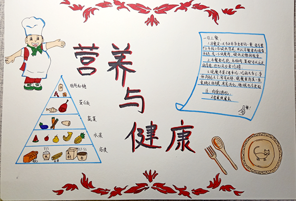 为了大力普及营养知识,引导学生不偏食、爱卫生、按时就餐的饮食习惯,班级开展了“营养与健康手抄报”活动,引导学生不吃零食、不吃三无食品、不吃变质过期食品,倡导学生遵循“早吃好、午吃饱、晚吃少”的原则,均衡营养、适量运动、增强体质。