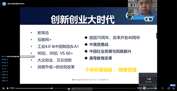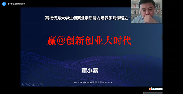6月2日下午,创业书院第四届创新创业宣传周系列活动专题报告以钉钉直播方式进行。本次活动邀请到西安山水智慧集团CEO、高级经济师、企业导师董小泰为创业书院1000名学子带来了“双创”时代优秀人才的素质养成主题讲座。