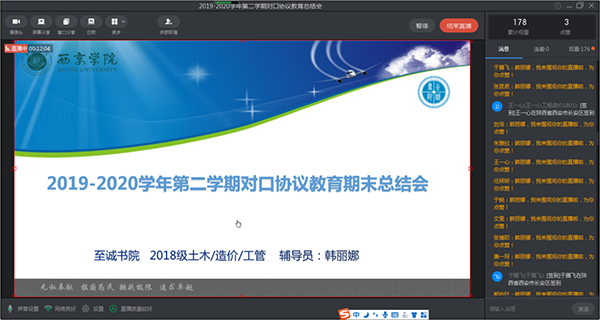 “对口协议”教育是我校推进大学生思想政治教育工作的主要渠道之一,更是加强学生素质教育和管理的特色教育模式。本学期以来,由于受新冠肺炎疫情影响,西京学院至诚书院坚定目标,通过线上线下多种方式大力推进“对口协议”教育工作的全落实,确保每名学生不因疫情而颓废,不因无事而无为,大力帮扶塑造学生健康、个性、乐观、积极地人生轨迹。