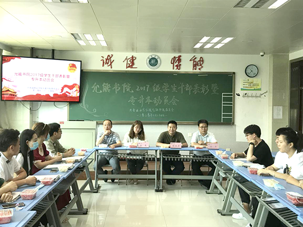 6月24日,允能书院2017级团学干部总结表会在1434教室举行。书院院长程永清、事务科科长张爽、发展科科长付平以及2017级团学组织学生干部、专升本学生代表参会。会议由分团委书记宋思迪主持。