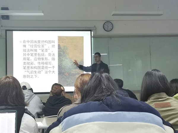 近日,在我校艺海201,由设计艺术学院组织举办了题为:“刍议谢赫‘六法’与中国画的意境之美”的学术讲座,约有百余学生参加,讲座由我校青年教师华忠凯主讲。