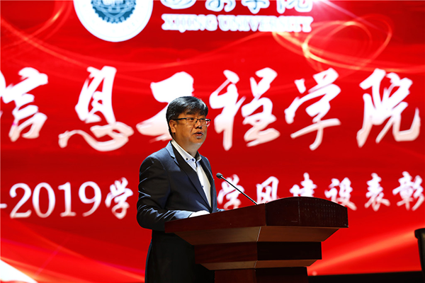 最后肖建军对信息工程学院召开的学风建设暨表彰大会给予的充分的肯定,学风是学生思想道德品质、学习精神与综合素质的重要体现,是学生成长的基础和前提。抓学风是营造良好育人环境,传承优良办学传统的根本保证;是提高人才培养质量,实现学校内涵发展的必然要求;是促进学生健康成长,实现人的全面发展的必要条件。新时期“悠哉悠哉”般的大学生活如今“一去不复返”了,我们要在新的站位上深刻理解加强学风建设的重要意义,要深入学习贯彻全国教育大会和全国高校本科教育工作会议精神,花大力气、动真格抓学风建设,以四个回归、课堂革命为切入点,客观把握、精准剖析当前学风建设存在的突出问题,齐心协力、多措并举,推动形成“教师善教、学生乐学、学风浓郁”的良好氛围,掀起人人抓学风建设的热潮。