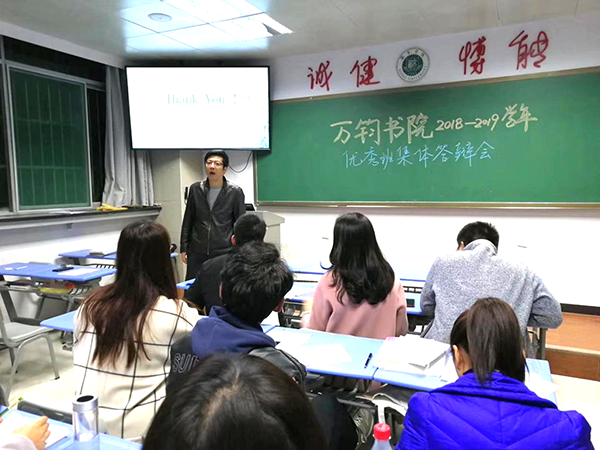 为进一步加强优良学风建设,充分发挥先进典型的示范引领作用,11月7日下午,万钧书院于2139教室开2018-2019学年先进班集体答辩,万钧书院分党委书记、院长李贺,发展科科长段领、事务科科长高玉枝以及各年级辅导员代表担任本次答辩会评委。
