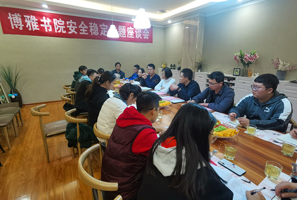 11月6日,博雅书院举行安全稳定座谈会,参加会议的有西京学院安全稳定办主任朱振春、博雅书院院长马璐、大学生发展与服务中心事务科科长童绥勇,以及书院全体辅导员,会议由博雅书院事务科科长张理斌主持。