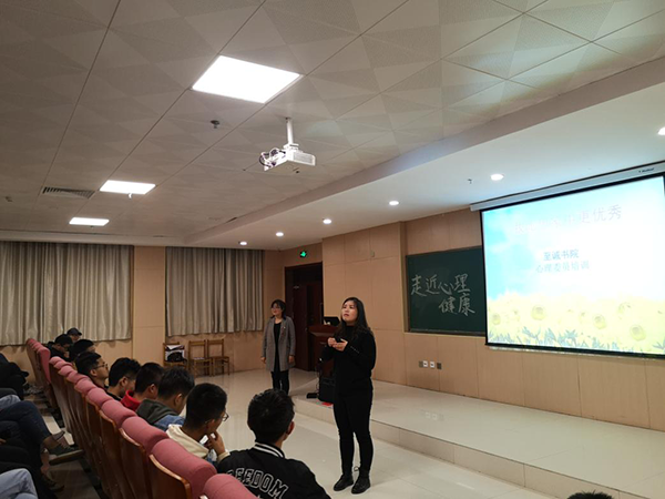为了增强同学们对心理健康的关注,普及心理健康基本知识,提高同学们心理保健意识和心理调适能力,进一步提升我院学生干部的专业素养和核心能力,10月31日下午,至诚书院二级心理站在我校分图书馆102室举办“大学生心灵成长系列活动”之“走近心理健康”主题培训,至诚书院部分团委学干部代表及2019级班级心理委员、宿舍心理委员140余名学生进行了心理健康教育培训。