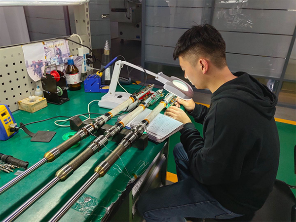 田怀谷表示,在实习前期,他们根据高满师傅并按照按照威盛公司的技术要求进行电感和变压器的绕制,而且要利用TH2828精密LCR数字电桥对绕制的仪器进行检测,提高了自己的动手能力。在变压器的绕制过程中发现测井仪器中使用的变压器相对实验课中绕制的变压器工艺流程更加复杂,要求更加严格。李菲同学在工程师傅的指导下,完成扶正器的装配,亲自体验了扶正器的装配流程。学会了对返修仪器的拆卸,以及清洗工作,对测井仪器的了解更加深刻。