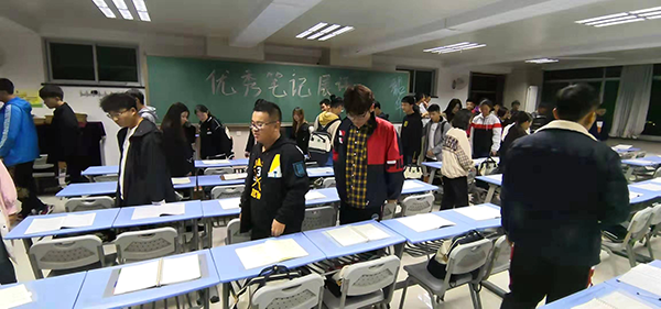 在展评中,同学们认真观看,并且相互交流、探讨,选出自己心目中的“最美笔记”。参与评选的笔记有的简洁工整,有的图文并茂、生动多彩。无论是高数、英语、亦是晨读笔记,其内容详尽丰富,字体认真整洁。