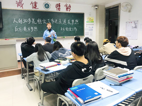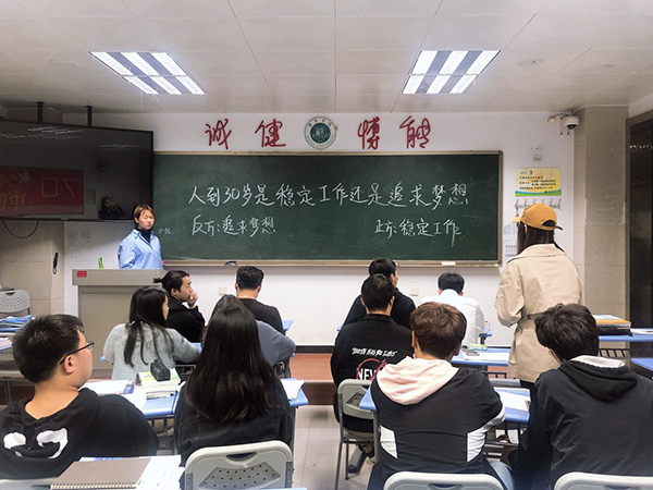 近年来,大学生辩论赛在高校蓬勃开展,已经成为高校校园文化建设的重要内容,为了提高学生综合素质,培养学生团队精神以及思维表达能力,丰富校园生活,10月10日晚,创业书院2018级国际经济与贸易和电子商务专业在2240教室开展了“辩论树榜样 青春展风采”辩论赛,本次辩题为“人到30岁是稳定工作还是追求梦想”,活动由马雅卓主持。