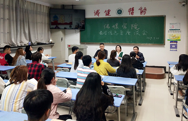 “交流安”:9月25日召开传媒学院班级教学联络员座谈会,了解学生的学习动态,征求各班级学生对教师的教学效果、“雨课堂”的推广及学院教学工作的意见和建议,会上,教学联络员们积极发言,将平时教学中的较为突出的方面反馈给教务科,学院领导们也就同学们学习过程中遇到的问题和疑惑进行了及时的解答。两个小时的座谈会中,大家畅所欲言,提出了许多宝贵的意见和建议,形成家人一般的互动机制,在联络员理应发挥班风管理谋略者、学风氛围带动者、教学沟通桥梁者三方面达成了有效共识。