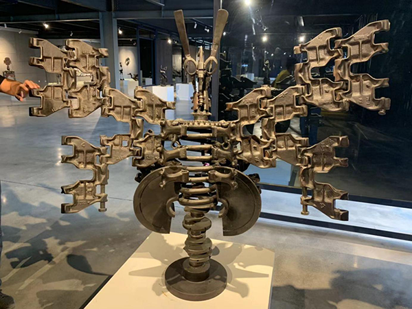 西安大风尚再生艺术馆以废弃的犁铧、铁杈、镢头锨、机床、管道、齿轮、链条、轴承、连杆、塑料、汽车零部件、机器报废件,甚至是废钢筋头和废钢压块为素材,经过挑选、清洗、焊接、打磨、喷砂、抛光、上漆等十几道工序,化腐朽为神奇,将文化密码揉进这些破烂物件,从而诞生了一件件构思巧妙、让人啧啧称赞的艺术作品。“这些作品不仅带给观者惊艳的视觉享受,而且颠覆了人们对废品破烂的认知,同时传递着珍爱环境、节约资源再生利用的新发展理念。”