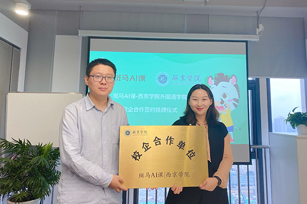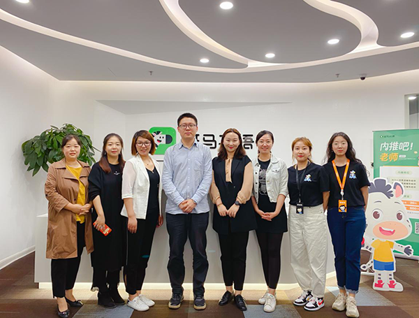 6月17日下午,外国语学院英语专业新建实习基地——斑马AI课挂牌仪式暨实习基地调研工作在曲江会展中心大厦国际B座21层斑马AI课成功举行。外国语学院副院长晁正,英语专业负责人齐阿曼,英语专业基础教研室舒瑜、姜薇、董春晖一行参加了此次挂牌仪式。西安斑马招聘培训部负责人张阳老师,西安地区校招负责人袁晓雪老师作了热情招待并带领一行人参观了公司。
