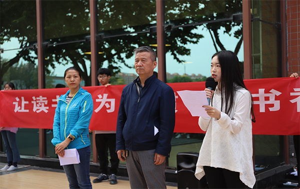 学生代表财务管理1902班葛奇在活动中发言指出读书有三大作用:一是正三观,二是开眼界,三是存善心。她与大家一起分享了读书的意义,号召全大家多读书,腹有诗书气自华。