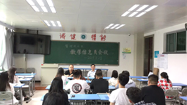 8月28日下午,管理技术系在1204教室举行了教学信息员会议。参加会议的有管理技术系主任李俊,教务科长弋俊楠,2017级和2018级38个教学班的学习委员。