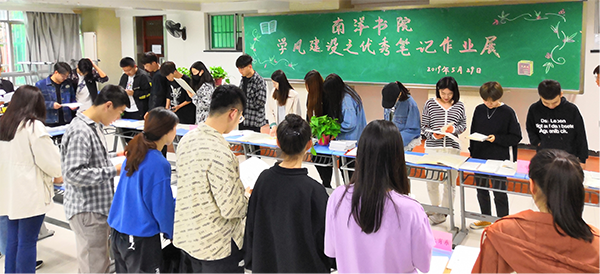 为推进学风建设深入开展,引导广大同学养成良好的学习习惯,营造勤于学习、善于思考的良好课堂学习氛围,南洋书院5月29日下午组织开展了“优秀笔记、作业展活动”。出席本次活动的有南洋书院院长王培涛、发展科科长范光、事务科科长何权红,应用会计系主任李杰、商贸技术系教务科科长何建武、管理技术系教务科科长弋俊楠及200名学生代表。