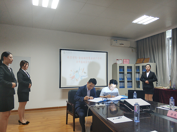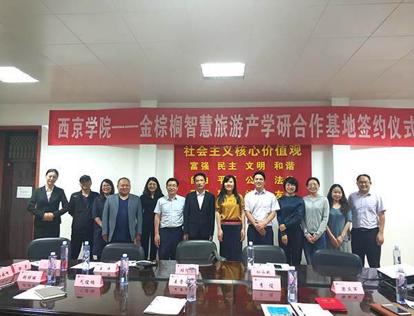 会议签署西京学院---金棕榈智慧旅游产学研合作基地合作协议,双方将在人才培养方案修订、师资培训、课程建设、实验室建设、科学研究等方面展开合作。企业方将免费向合作基地提供价值100万的软件产品,供基地师生使用。