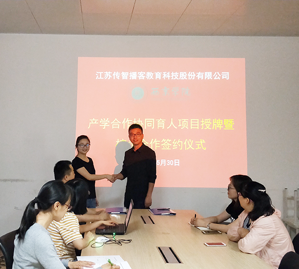 5月30日,机电技术系与江苏传智播客教育科技有限公司育人项目签约仪式在6号办公楼316举行。计算机技术教研室主任赛炜、传智播客西安分校长焦宁波,传智播客院校邦校事业部西北区总监郑智以及计算机技术教研室部分教师参加签约仪式。