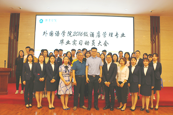 酒店管理专业非常注重实践教育环节,顶岗实习是提高学生实践操作能力的主要途径。本次实习说明大会的召开,在精神上给全体学生鼓足了士气,为即将到来的实习做好充分的心理准备。相信2016级酒店管理专业的全体学生一定会爱岗敬业,在本次实习期间快速成长,收获满满。