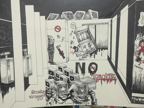 学生绘制的作品在艺海南侧进行为期一周的展览。经过展评,最终视觉传达1702班张欣惠创作的《全民戒烟》、环境设计1701班张慧敏创作的《三分钟了解校园不文明》等10副作品获得了一致好评。据悉,博雅书院将在下个月举行的本学期学风建设表彰会中对优秀作品进行表彰。