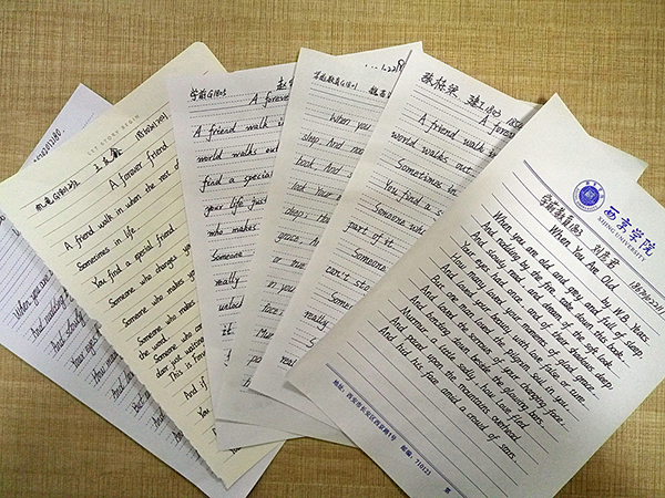 为进一步激发我校学生学习英语的兴趣,增强学生的书写规范意识,培养学生良好的书写习惯,提高学生的英语书写能力,营造良好的英语学习氛围,5月9日下午,由商贸技术系组织的第一届英文书法大赛在1121教室顺利举行。本次书法大赛得到同学们的积极响应,来自高职各专业共40余名学生参与了此次比赛,商贸技术系方芳、孙圆媛、赵群担任此次比赛的评委。