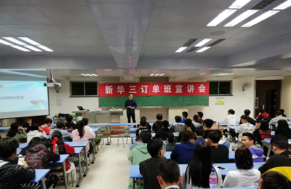随后,新华三大学培训中心负责人王必成经理分别从公司发展、职业规划、岗位需求、培训内容、订单班招募要求等方面做了宣讲,并现场解答了同学们的提问。
