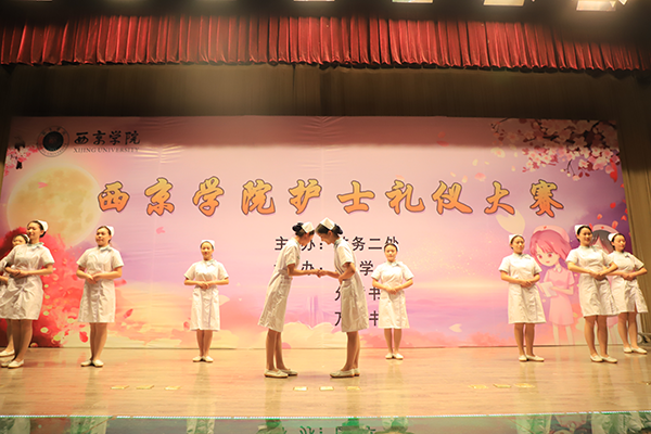 5月23日晚,西京学院第五届护士礼仪大赛在学校小礼堂成功举办。长安医院护理部主任李迎春、护士长何格霞、西安市工会医院护理部主任程丽萍、护士长田聪聪、陕西省友谊医院护士长薛薛文利、郝西宁应邀出席并担任评委,允能书院院长程永清、医学院院长张煜星、教务科长韩朝、允能书院学生事务科科长张爽、发展科科长付平和医学院部分教师和18级学生参加并观看了比赛。