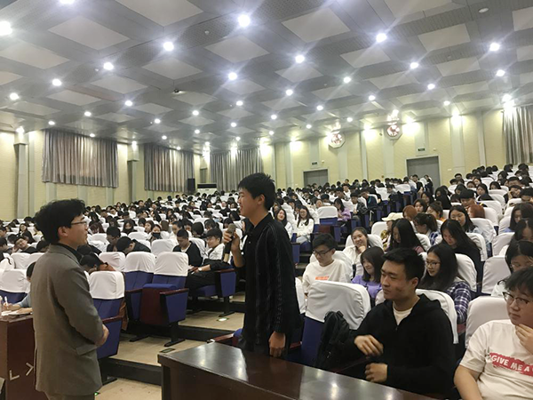 讲座上高老师幽默风趣的和学生互动着,从你为何读大学到你入学以来学到了什么为切入点,将报告会层层深入。