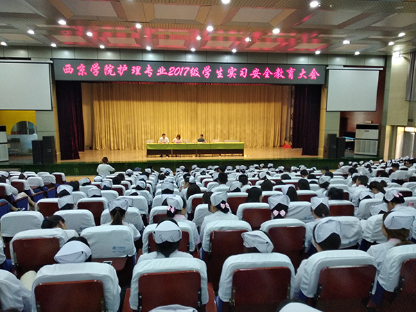 为进一步做好实习安全工作,帮助学生克服实习前的焦虑情绪,提高同学们的安全防护意识, 允能书院于 5 月 23日在小礼堂隆重举行了2017级护理学生实习安全教育大会。允能书院院长程永清,发展科科长付平,医学院教务科长韩朝及2017级护理全体辅导员参加会议,会议由张爽主持。