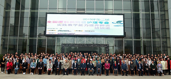 4月12日,第二届全国医科类院校护理专业实践教学能力提升师资培训班在贵阳护理职业学院顺利开班,为期三天。此次培训由中国国际科技促进会卫生健康科技工作委员会主办,贵阳护理职业学院承办。共有30个省、直辖市、83所院校、180余人参加。我校教师韩明星、杨捷玲进行了参观学习。