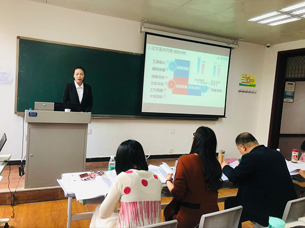 旅游酒店管理专业负责人丁爱芹代表答辩委员会对答辩程序作了说明,并提出了答辩现场的具体要求。在论文答辩中,学生通过个人汇报、答辩评委提问、个人回答三个环节,答辩在严肃、紧张的气氛中进行。在学院教务科的组织下,本次答辩顺利结束。