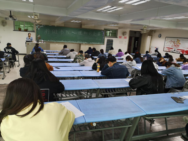 ——举行心理知识竞赛。为了普及心理健康知识,提高大一学生心理知识水平。近日,行健书院举行2018级新生心理知识竞赛。本次心理知识竞赛由班级前期宣传、题库复习,正式参赛,优秀表彰等四个环节组成。共设4个考场,480余名新生参与,考试由学生会干部监考,二级辅导站老师巡考,考场秩序井然,效果良好。