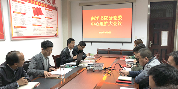 4月4日下午19:30,南洋书院在一号教学楼1235会议室召开分党委中心组理论学习(扩大)会议暨辅导员政治理论学习培训会,分党委中心组成员及全体辅导员参加了学习。会议由分党委书记王培涛主持。