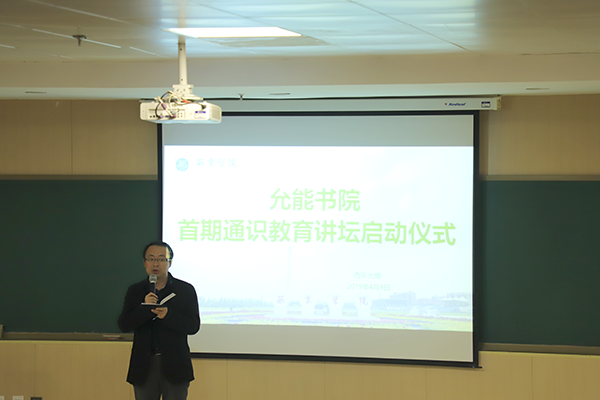 为推进学生通识教育工作,培养学生博学多识的能力,4月9日允能书院首期通识教育讲坛启动仪式暨首场通识教育课在图书馆102报告厅举行。西安交通大学管理学院高级培训中心市场部主管侯汶君、西京学院通识教育中心主任翁建定、西京学院继续教育学院副院长杨双贵、允能书院院长程永清、允能书院学生发展科科长付平及200余名师生参会。会议由王仁飞主持。