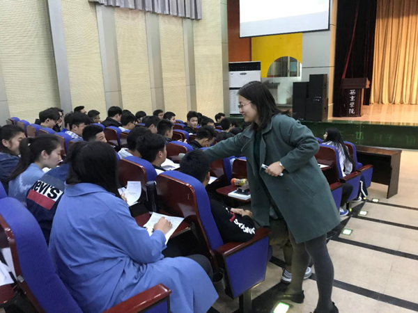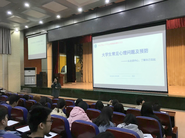 在讲座过程中,贾婷老师首先为同学们讲述了心理学的定义,也就是“什么是心理学?”。而后,又为同学们列举了新生进入大学的不适、恋爱方面的困惑、人际交往中的矛盾、职业发展与择业问题等一系列大学生常见的心理问题。她认为,辅导员应该开展经常性的调差研究,深入学生,关心学生的心理动态,及时了解学生的心理健康与心理素质状况,并且在学生日常管理工作中,自觉贯彻心理健康教育,营造良好的心理健康教育环境与校园心理文化氛围。