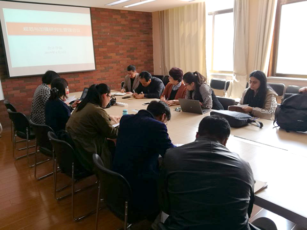 为进一步加强研究生培养过程管理,提高培养质量,4月9日,会计学院在图书馆505会议室举办研究生管理专题会议,审计研究生导师及任课教师代表参会。