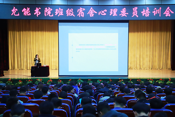 允能书院院长程永清、学生事务科科长张爽、学生发展科科长付平,书院二级心理辅导站站长常晓娟及书院辅导员老师同2017级、2018级班级心理委员、宿舍心理委员及部分学生代表共计五百余人参加了此次活动。