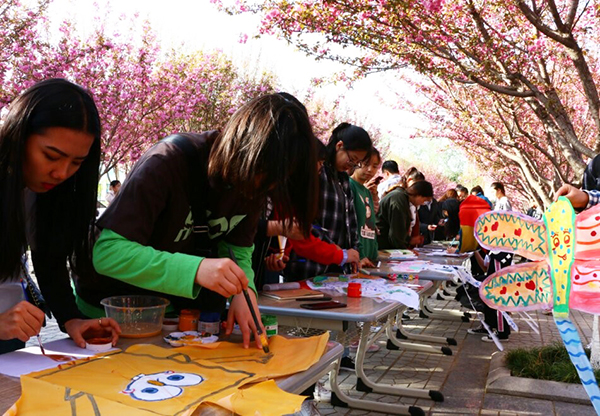 书院各班级心理委员、宿舍心理委员分为十五个代表队,现场手绘风筝。随后,同学们将手绘风筝在时代广场放飞。