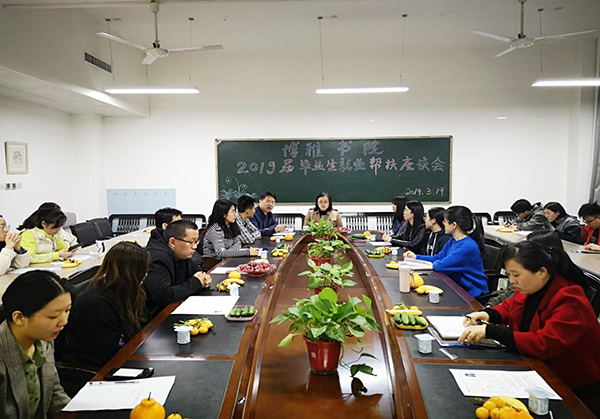 3月19日,博雅书院院长马璐在艺海219会议室组织召开2019届毕业生就业帮扶座谈会。参加座谈会的还有书院事务科科长张理斌、发展科科长胡佳佳,全体帮扶老师以及被帮扶的学生。座谈会由书院事务科科长张理斌主持。
