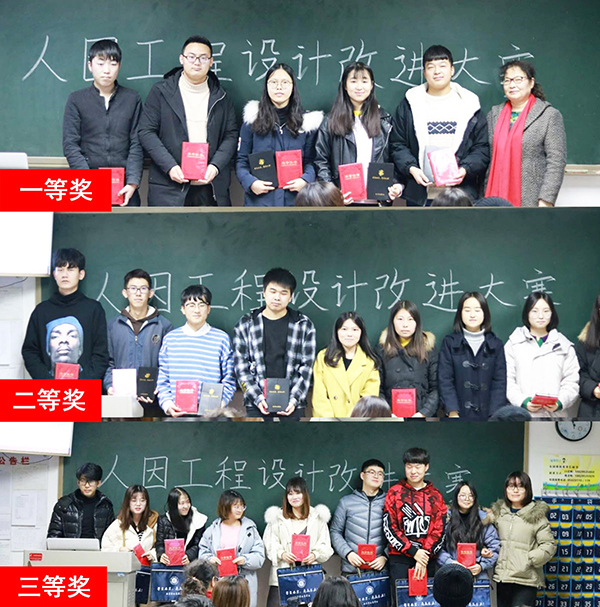 本次比赛学生通过实地调查、实际测量,发现生活中不符合人因工程学方面的内容,利用人因工程学的相关理论和知识进行重新改进与设计,使之更符合人因工程学的实际原理。通过一个多月的数据调研、问题分析、方案设计、报告撰写等前期准备,每个竞赛小组都充分展示了自己的调查结果和创新设计。其中,王阿龙、王峰瑞、赵欣、周雪杰和王浩博小组的《火车硬座人因工程改进与设计》方案受到评委老师和学生的一致好评,荣获一等奖。
